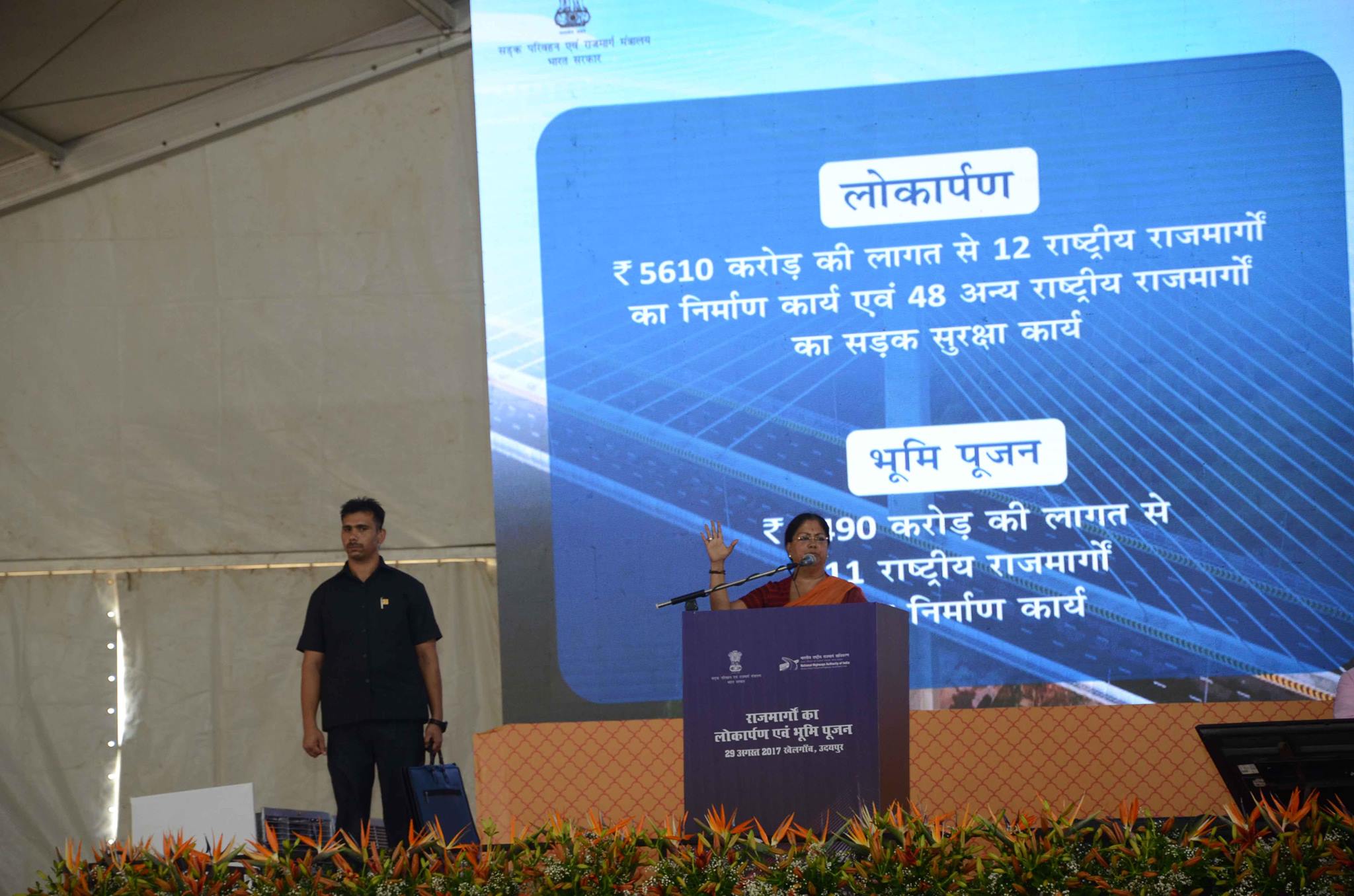 The Union Minister for Road Transport & Highways and Shipping, Shri Nitin Gadkari delivering his address after inauguration and foundation stone laying for several major highway projects, at Udaipur, in Rajasthan on August 29, 2017.