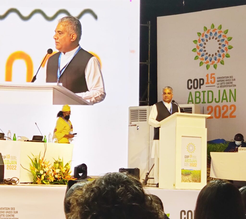 केंद्रीय पर्यावरण, वन और जलवायु परिवर्तन मंत्री श्री भूपेंद्र यादव ने आज यूएनसीसीडी के पक्षों के सम्मेलन के 15वें सत्र में राष्ट्र की ओर से वक्तव्य दिया। वह कोटे डी’आइवर में अपने 15वें सत्र में संयुक्त राष्ट्र कन्वेंशन टू कॉम्बैट डेजर्टिफिकेशन (यूएनसीसीडी) के पक्षों के सम्मेलन को संबोधित कर रहे थे।