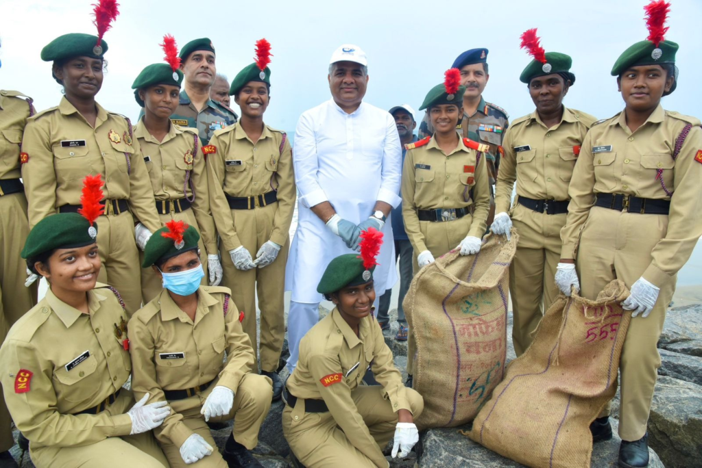 Union Minister of Environment, Forest and Climate Change Shri Bhupender Yadav led the Beach Cleaning and Awareness Campaign along with Hon’ble Lieutenant Governor of Puducherry Dr.Tamilisai Soundararajan and the Hon’ble Chief Minister of Puducherry Thiru. N. Rangaswamy.